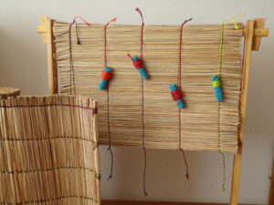 En aquest curs farem una estora de 70 x 100 cm teixida amb bova, també dita boga o balca, (Thyfa angustifolia) fent servir un teler de pedres.