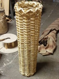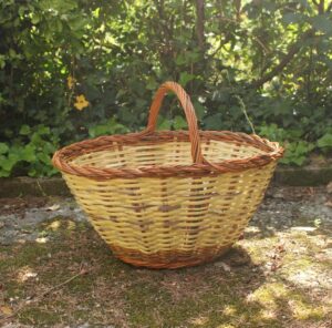 Aquesta és una de les peces més conegudes de la tradició catalana. Començarem creant la base ovalada amb la tècnica del cul de queixal, després aprendrem a fer un remolí tradicional i teixirem les parets del cistell amb canya esberlada. Es farà una explicació sobre com esberlar canyes i hi haurà els materials per practicar com fer-ho. Per rematar el cistell, acabarem amb la nansa i la característica vora cargolada de tres ramals.
