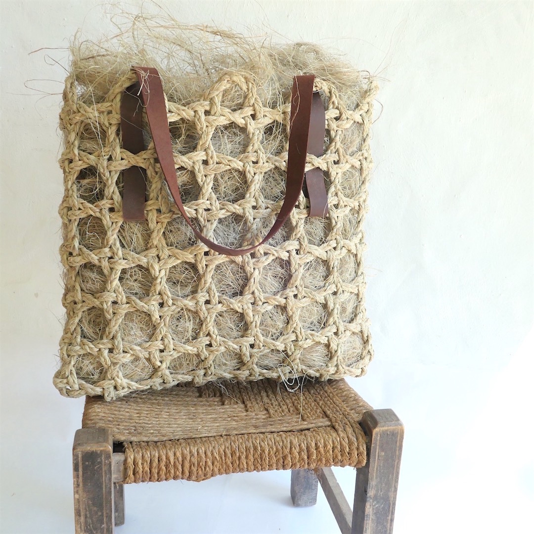 En aquest curs treballarem una tècnica híbrida desenvolupada per la Simone Simons per al disseny de la seva «bossa en punt de gasa». És una combinació d’una trena feta amb espart i un punt que prové del món de les puntes de coixí.