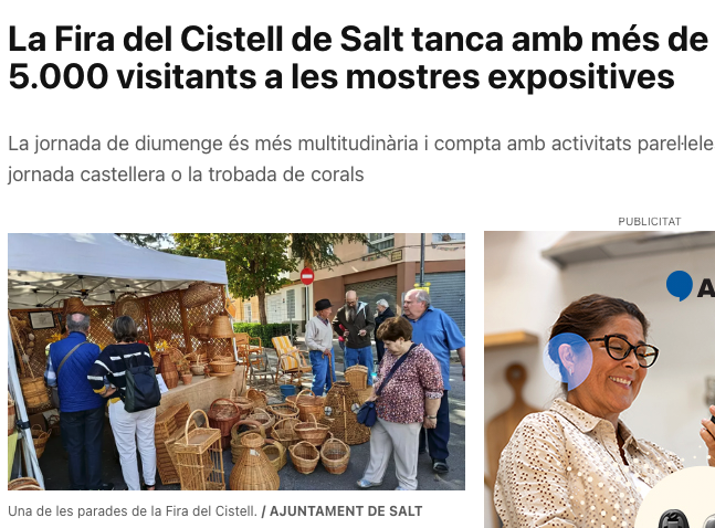 La 27a FIRA DEL CISTELL als mitjans Posted on 9 octubre, 2025 /Under Sin categoría La fira va protagonitzar un article al Diari de Girona i el següent reportatge a TVGirona